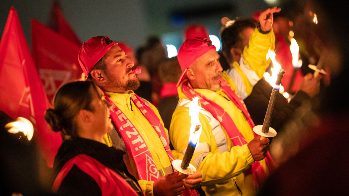 Demonstriert wurde in der Nacht unter anderem bei dem möglicherweise von der Schließung bedrohten VW-Werk in Osnabrück. 250 Mitarbeitende waren vor Ort, teilte ein Sprecher der IG Metall in der Nacht mit. «Die Beschäftigten geben ihren dauerhaften Preisdruck an der Kasse über Warnstreiks jetzt an die Arbeitgeber zurück: für eine schleunige Lösung mit Substanz», erklärt die neue IG-Metall-Tarifvorständin Nadine Boguslawski. Das von der Schließung bedrohte Werk mit rund 2.500 Beschäftigten fällt nicht unter den VW-Haustarifvertrag, in dem noch bis Ende November Friedenspflicht herrscht.