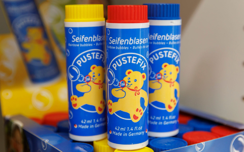 Die Rezeptur für die Seifenblasen von Pustefix sei streng geheim, sagt der Chef. Wasser sei natürlich drin und Seife. «Und ein Verdickungsmittel, um die Seifenblasen entstehen zu lassen.» Seifenblasen an sich seien nichts Neues gewesen, sagt Christian. Aber die Flüssigkeit abzufüllen und fix für das Pusten fertig zu machen, das sei neu bei den Spielwaren gewesen. Daher auch der Name Pustefix.