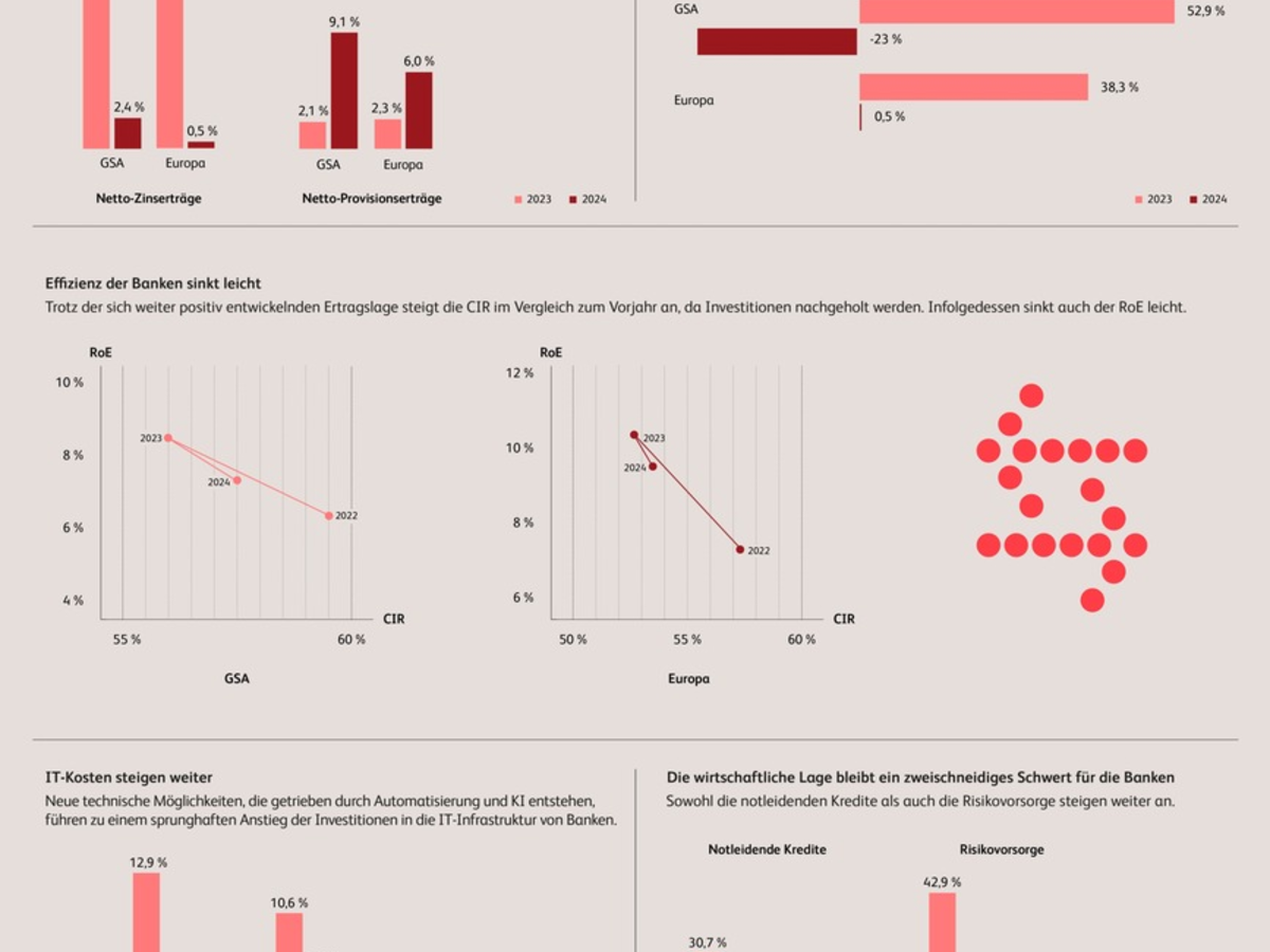 Dr. Robert Bosch resĂŒmiert: "Unsere Analyse zeigt: Der europĂ€ische Bankensektor ist bei konstanten Bilanzsummen und trotz geopolitischer Unsicherheiten bemerkenswert widerstandsfĂ€hig. Die Institute stĂ€rken ihre Kapitalbasis, investieren gezielt in Zukunftstechnologien wie KI und Cloud und steigern ihre ErtrĂ€ge ĂŒber das ProvisionsgeschĂ€ft. Gleichzeitig sichern höhere LiquiditĂ€tskennzahlen die Stressresistenz. Doch steigende IT- und Personalkosten sowie wachsende Risiken durch Insolvenzen und NPLs fordern klare strategische Antworten - insbesondere von deutschen Banken."
