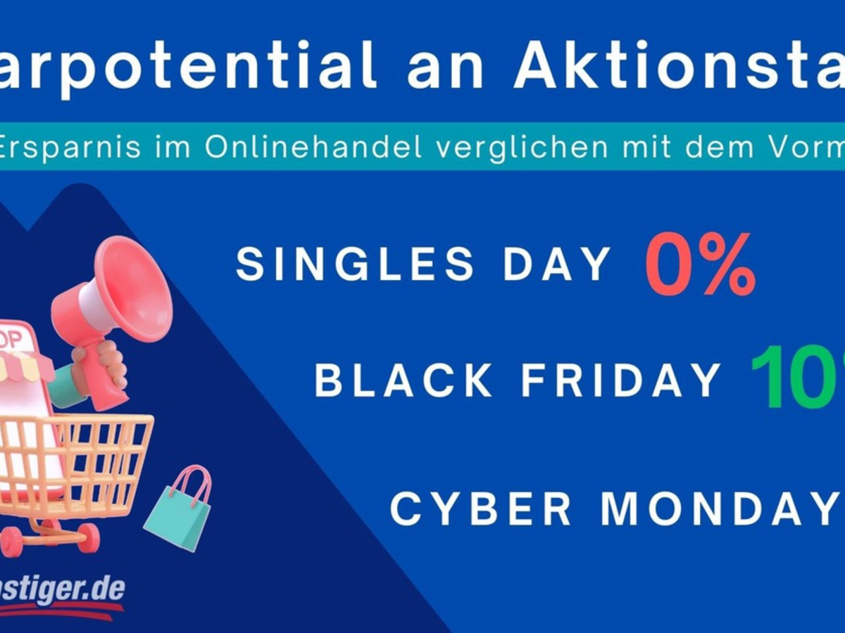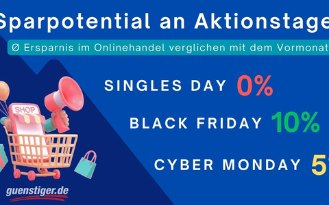 Anlässlich des aus China stammenden Single Days bieten auch hierzulande zahlreiche Händler am 11. November spezielle Rabattaktionen an. Laut der Analyse von guenstiger.de lohnt es sich für Schnäppchenjäger jedoch größtenteils nicht, an diesem Tag zuzugreifen. Beim Singles Day 2022 kosteten die über 200 untersuchten Produkte im Schnitt genauso viel wie im Vormonat. Nur vereinzelt konnten höhere Rabatte im zweistelligen Bereich gefunden werden.