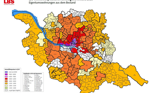 Weitere Informationen zum LBS-Immobilienmarktatlas: Auf der Grundlage wissenschaftlicher Analysen wurden rund 17.011 öffentlich zugängliche Immobilien-Angebote in Hamburg und Umland im zweiten Halbjahr 2025 ausgewertet, davon 13.813 Angebote für Ein- und Zweifamilienhäuser sowie Eigentumswohnungen aus dem Bestand. Die dargestellten Preise sind jeweils Mittelwerte der Marktpreise. Je nach Lage der Immobilien in den Regionen sind daher Abweichungen nach oben und unten möglich.