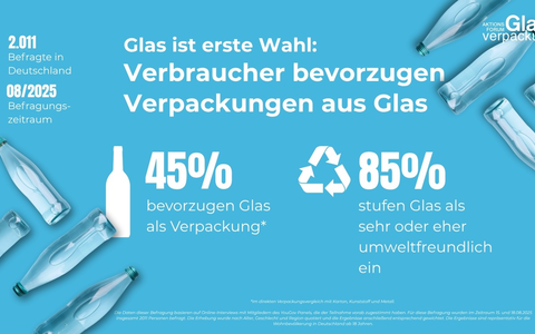 06.10.2025 - 10:30:00 | presseportal.deGlas ist die bevorzugte Verpackung für Lebensmittel und Getränke - das zeigt eine aktuelle YouGov-Umfrage* im Auftrag des Aktionsforums Glasverpackung, einer Initiative der Behälterglasindustrie, die über Glas als Verpackungsmaterial informiert. Befragt wurden 2.011 Verbraucher in Deutschland. Ziel der Befragung war herauszufinden, welche Verpackung Konsumenten für Lebensmittel und Getränke bevorzugen - und welche Eigenschaften Verbraucher Glasverpackungen im Vergleich zu anderen Verpackungsarten zuschreiben.