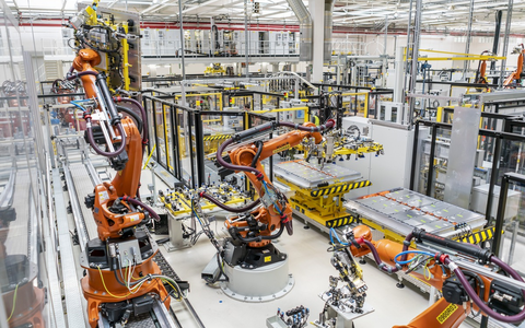 Rund 90 Beschäftigte pro Schicht montieren die Batteriesysteme auf circa 10.500 Quadratmetern Werksfläche. 82 vollautomatisierte Roboter übernehmen spezielle Aufgaben wie das Bewegen besonders schwerer Komponenten. Alle 60 Sekunden läuft eine neue Batterie für ein MEB-basiertes Modell vom Band. Wenn die Energiespeicher die Produktionslinie verlassen, wiegen sie im Fall der 82-kWh-Batterie fast 490 Kilogramm.