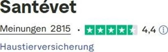 Durchschnittliche Bewertung von Santévet auf der Plattform Trustpilot