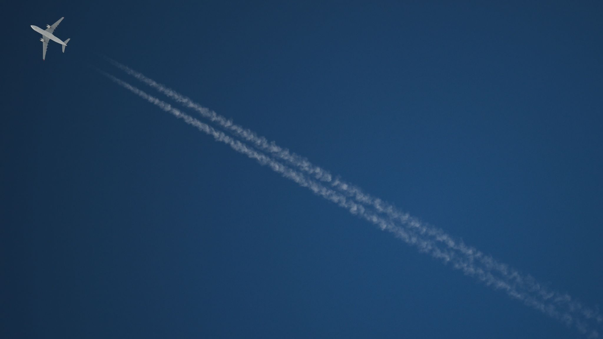 • Ein Passagierflugzeug hinterlässt beim Flug CO2 und Kondensstreifen. (Archivbild) - Foto: Arne Dedert/dpa