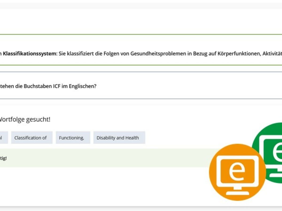 Die E-Learning-Kurse der BAR vermitteln praxisnahes Wissen zum gegliederten Reha-System in Deutschland. Sie eignen sich zur individuellen beruflichen Fort- und Weiterbildung, unabhĂ€ngig von Zeit und Ort: ob am Arbeitsplatz, im Home Office oder unterwegs. Der dreigliedrige Basis-Kurs "Reha und Teilhabe im gegliederten Sozialleistungssystem" bietet Grundlagenwissen und rechtliche HintergrĂŒnde rund um das gegliederte System in Deutschland. Interaktive Elemente unterstĂŒtzen das selbststĂ€ndige Lernen und fördern das VerstĂ€ndnis fĂŒr das komplexe Zusammenspiel im Sozialleistungssystem.