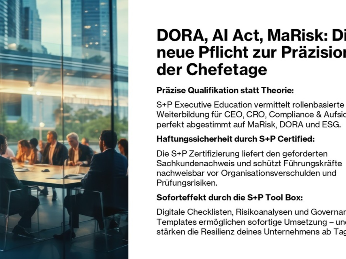 MaRisk, DORA, ESG: Warum rollenbasierte Weiterbildung zur Pflicht für Führungskräfte wird / Wie Top-Manager 2026 Haftungsrisiken vermeiden und digitale Resilienz aufbauen.