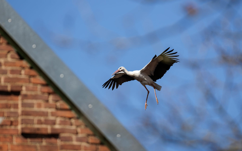 • Ein Storch im Landeanflug. - Foto: David Ebener/dpa
