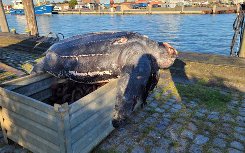 Bei dem von der Besatzung des Tonnenlegers «Triton» gefundenen Tier handelt es sich um eine etwa 1,70 Meter große und 500 Kilogramm schwere Lederschildkröte. Weil die Verwesung bereits weit fortgeschritten ist, lagert der Kadaver zunächst tiefgefroren in einem Tiefkühlcontainer. «Damit möchten wir einen weiteren Informationsverlust vermeiden», sagt Joseph Schnitzler vom ITAW.
